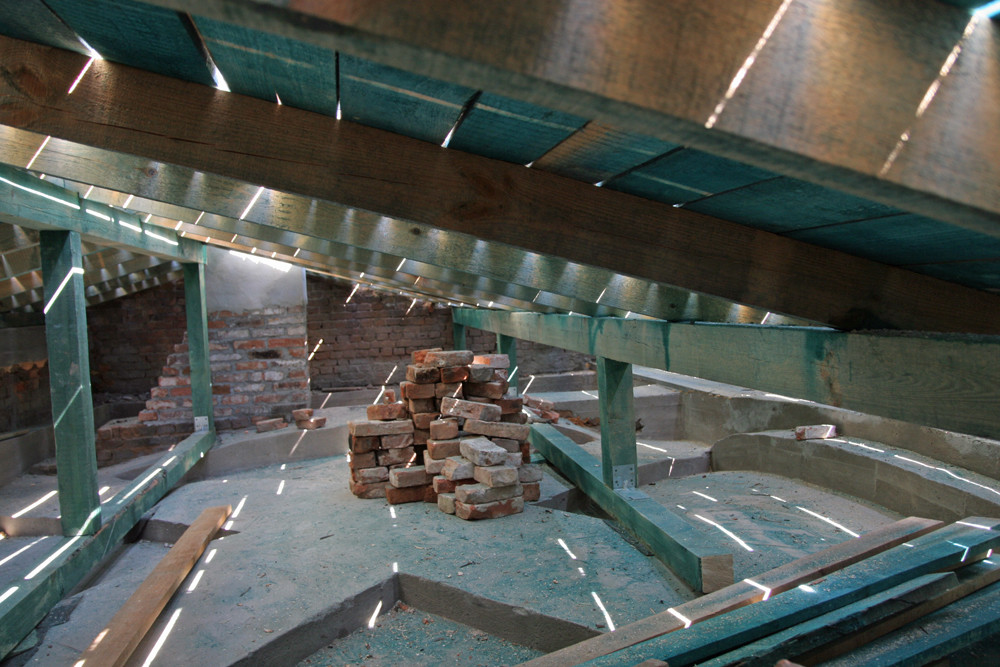 Oficyna zachodnia jest wolnostojącym budynkiem, znajdującym się tuż przy ul. Wolskiej, oddzielonym od reszty zabudowań klasztornych. Jej fatalny stan techniczny zmusił nas do generalnego remontu. Są to największe, najbardziej skomplikowane i najdroższe prace remontowe, jakie kiedykolwiek podjęłyśmy. Gdyby nie zabytkowy charakter budynku, dużo taniej i prościej technicznie byłoby go po prostu zburzyć i odbudować na nowo... Jak to w starym budynku, cały czas odkrywamy jakieś dodatkowe prace do wykonania, nieplanowane na początku remontu...